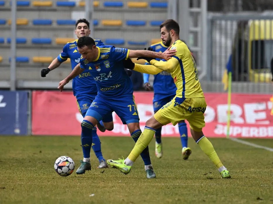 Adnan Aganovic si Alexandru Tudorie in meciul de fotbal dintre Petrolul Ploiesti si Unirea Slobozia, din cadrul Superligii Superbet desfasurat pe Stadionul Ilie Oana din Ploiesti, duminica 22 decembrie 2024. © FOTO:Razvan Pasarica/SPORT PICTURES