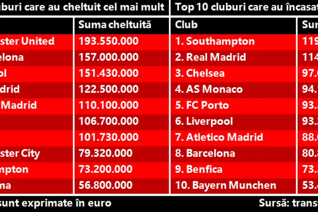 United a cheltuit cel mai mult, dar Barcelona și Real au dat marile lovituri ale verii. Bilanțul perioadei de transferuri