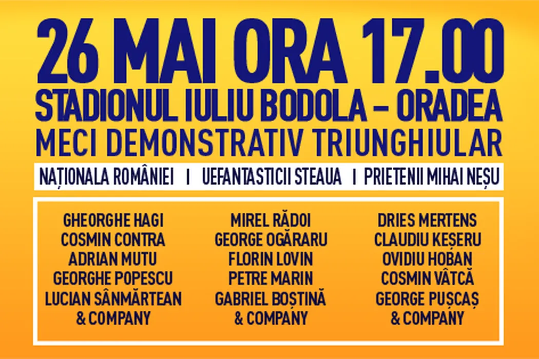 „Uniți pentru Mihai”, la Oradea! Mertens, Mutu, Hagi și Contra, printre invitați. Toate detaliile evenimentului