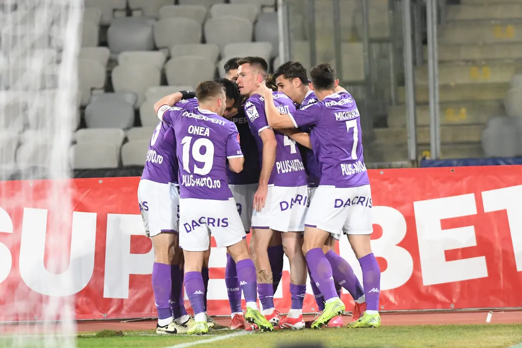 Fotbalistii rapidisti se bucura dupa un gol marcat in meciul de fotbal dintre FC Universitatea Cluj si FC Rapid 1923 Bucuresti, contand pentru Superliga Superbet, desfasurat pe Stadionul Cluj Arena din Cluj-Napoca, sambata 1 februarie 2025. © FOTO: Flaviu Buboi/SPORT PICTURES