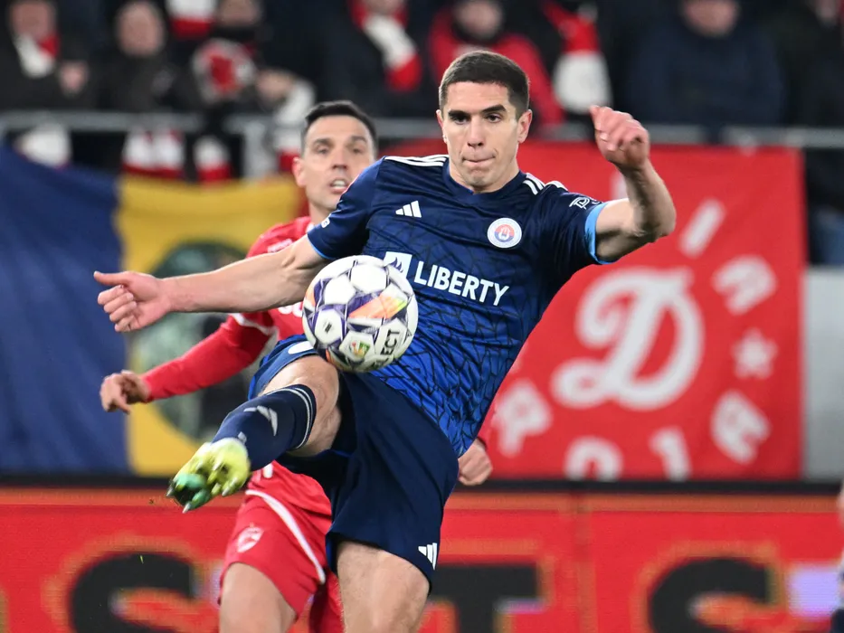 Nikola Stevanovic in meciul de fotbal dintre Dinamo Bucuresti si Otelul Galati, din cadrul Superligii Superbet, desfasurat pe Stadionul National Arcul de Triumf din Bucuresti, marti 4 februarie 2025. © FOTO:Razvan Pasarica/SPORT PICTURES