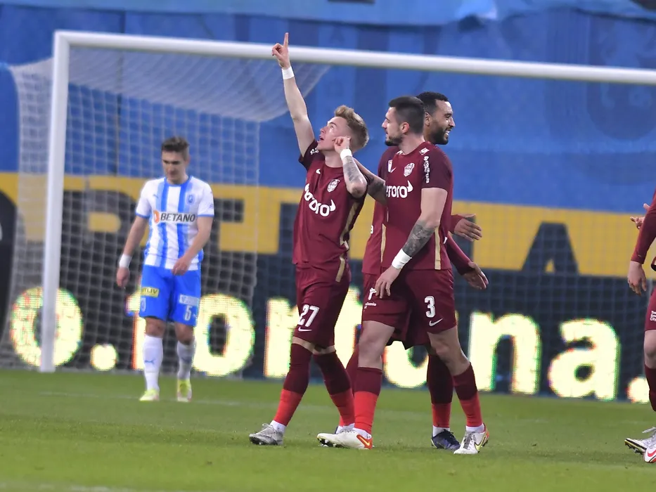 Catalin Mihai Itu se bucura dupa un gol marcat alaturi de Andonie Andrei Burca in meciul de fotbal dintre Universitatea Craiova si CFR Cluj, contand pentru Liga 1 Casa Pariurilor, desfasurat pe Stadionul Ion Oblemenco din Craiova, sambata 5 februarie 2022. © FOTO:Razvan Pasarica/SPORT PICTURES