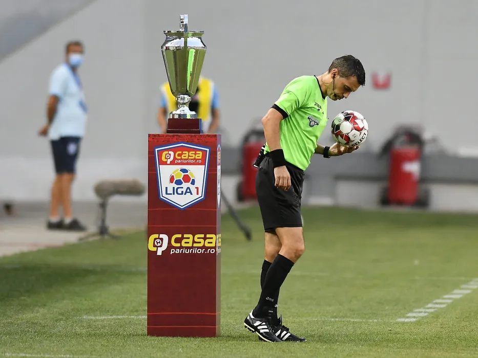 Ovidiu Hategan alaturi de trofeul Ligii 1 in meciul de fotbal dintre Universitatea Craiova si CFR Cluj, contand pentru play-off-ul Ligii 1 Casa Pariurilor, disputat fara spectatori pe Stadionul Ion Oblemenco din Craiova, luni 3 august 2020. © FOTO:Razvan Pasarica/SPORT PICTURES