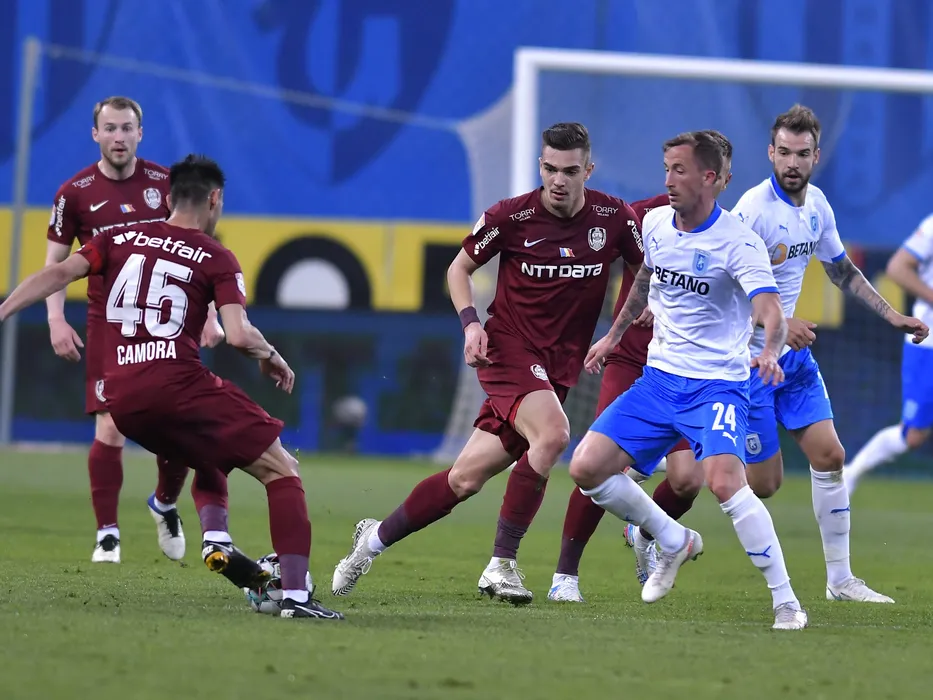 Denis Ciobotariu, Juan Del Carmen Camara Mesa si Alexandru Tudorie in meciul de fotbal dintre Universitatea Craiova si CFR Cluj, contand pentru Liga 1 Casa Pariurilor, desfasurat fara spectatori pe Stadionul Ion Oblemenco din Craiova, duminica 11 aprilie 2021. © FOTO:Razvan Pasarica/SPORT PICTURES