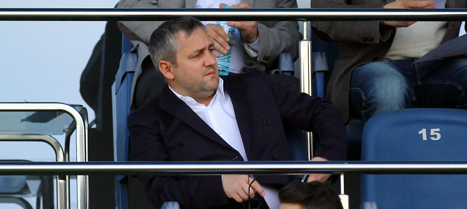 Mihai Rotaru (C), finantatorul CS Universitatea Craiova, urmareste meciul cu FC Bihor, din Liga a II-a la fotbal, la Craiova, sambata, 29 martie 2014. BOGDAN DANESCU / MEDIAFAX FOTO