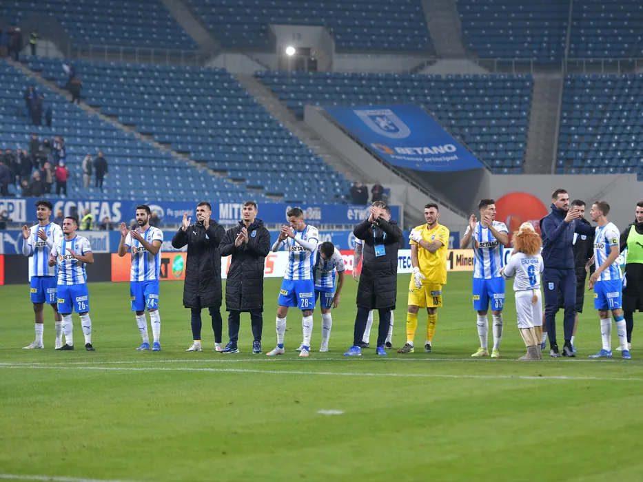 Fotbalistii craioveni aplauda galeria dupa meciul de fotbal dintre Universitatea Craiova si Academica Clinceni, contand pentru Liga 1 Casa Pariurilor, desfasurat pe Stadionul Ion Oblemenco din Craiova, luni 18 octombrie 2021. © FOTO:Razvan Pasarica/SPORT PICTURES