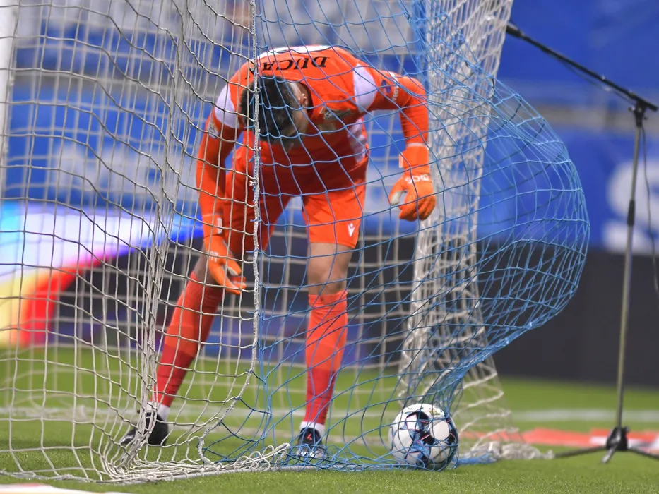 Razvan Cristian Ducan scoate mingea din plasa in meciul de fotbal dintre Universitatea Craiova si CS Mioveni, contand pentru Liga 1 Casa Pariurilor, desfasurat pe Stadionul Ion Oblemenco din Craiova, sambata 30 octombrie 2021. © FOTO:Razvan Pasarica/SPORT PICTURES
