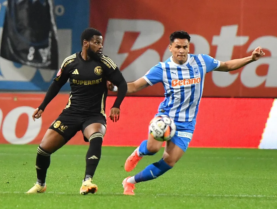 Issouf Macalou si Denil Omar Maldonado Munguia in meciul de fotbal dintre Universitatea Craiova si FC Universitatea Cluj, contand pentru SuperLiga Superbet - Play-Off, desfasurat pe Stadionul Ion Oblemenco din Craiova, vineri 14 martie 2025. © FOTO: Remus Badea/SPORT PICTURES