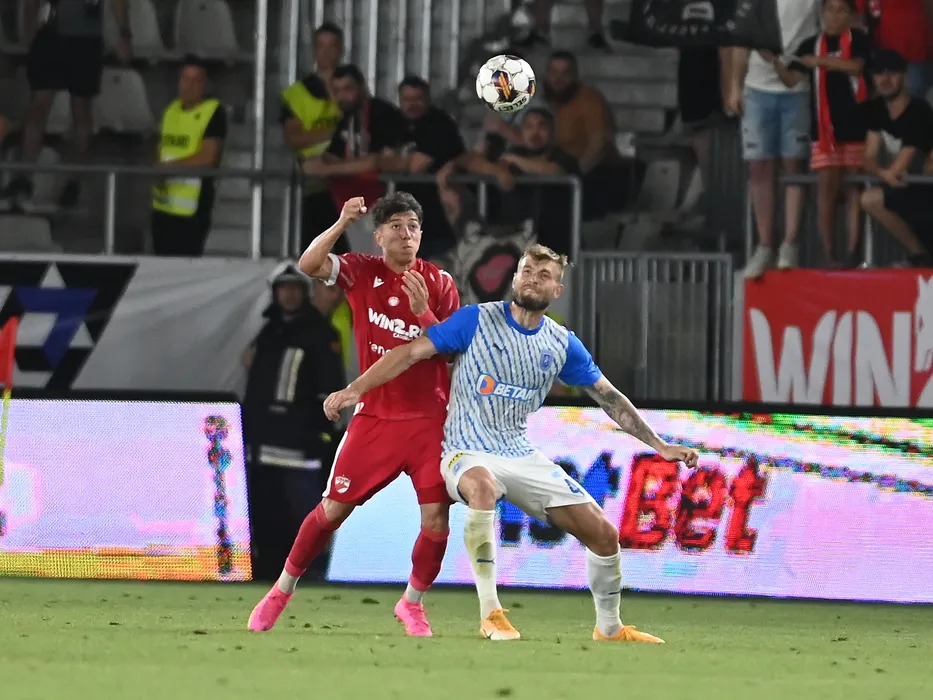 Costin Ionut Amzar si Alexandru Cretu in meciul de fotbal dintre Dinamo Bucuresti si Universitatea Craiova, din cadrul Superligii Superbet, desfasurat pe Stadionul National Arcul de Triumf din Bucuresti, luni 17 iulie 2023. © FOTO:Razvan Pasarica/SPORT PICTURES