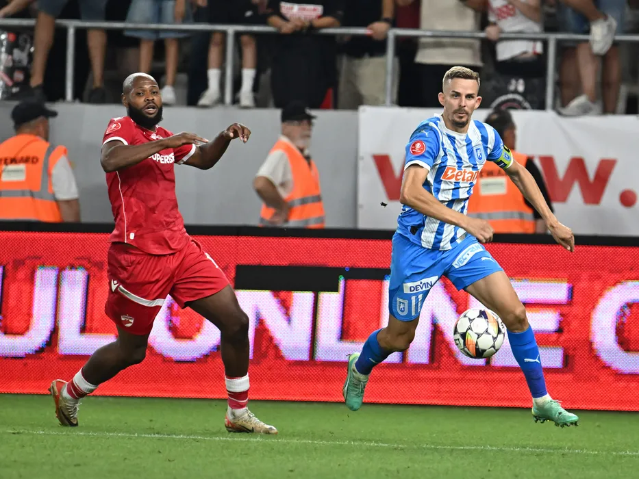 Hakim Djamel Abdallah si Nicușor Silviu Bancu in meciul de fotbal dintre Dinamo Bucuresti si Universitatea Craiova, din cadrul Superligii Superbet, desfasurat pe Stadionul National Arcul de Triumf din Bucuresti, sambata 24 august 2024. © FOTO:Razvan Pasarica/SPORT PICTURES