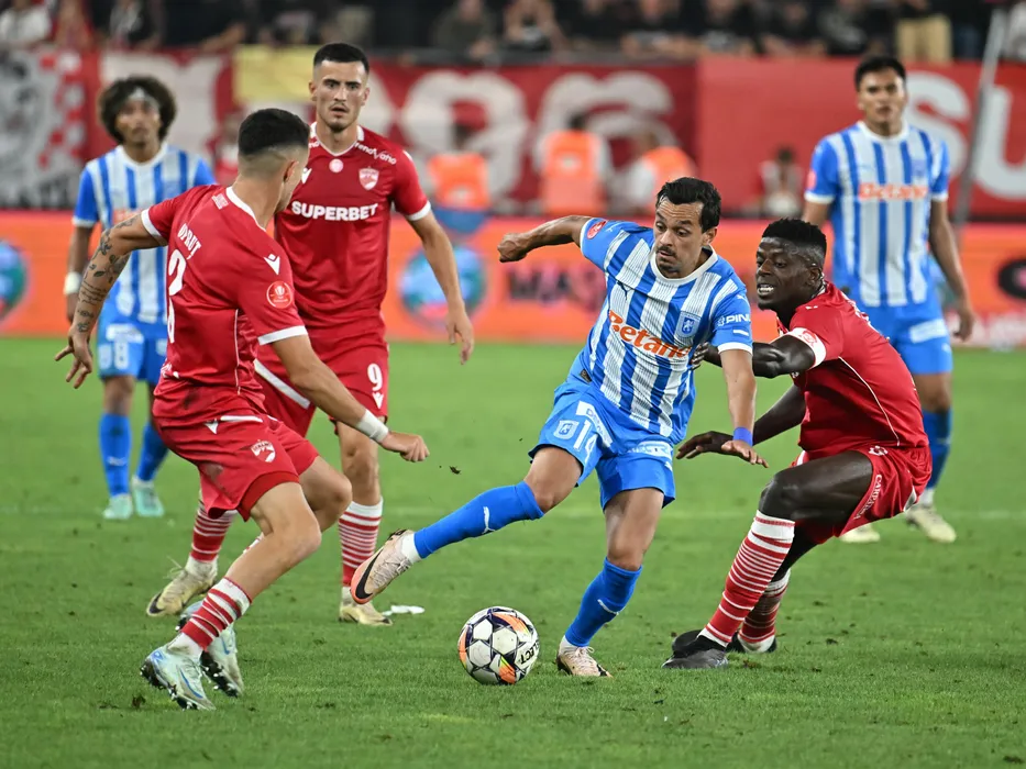 Selmani Astrit, Lyes Hafid Houri si Vhakka Eddy Stelh Gnahore in meciul de fotbal dintre Dinamo Bucuresti si Universitatea Craiova, din cadrul Superligii Superbet, desfasurat pe Stadionul National Arcul de Triumf din Bucuresti, sambata 24 august 2024. © FOTO:Razvan Pasarica/SPORT PICTURES