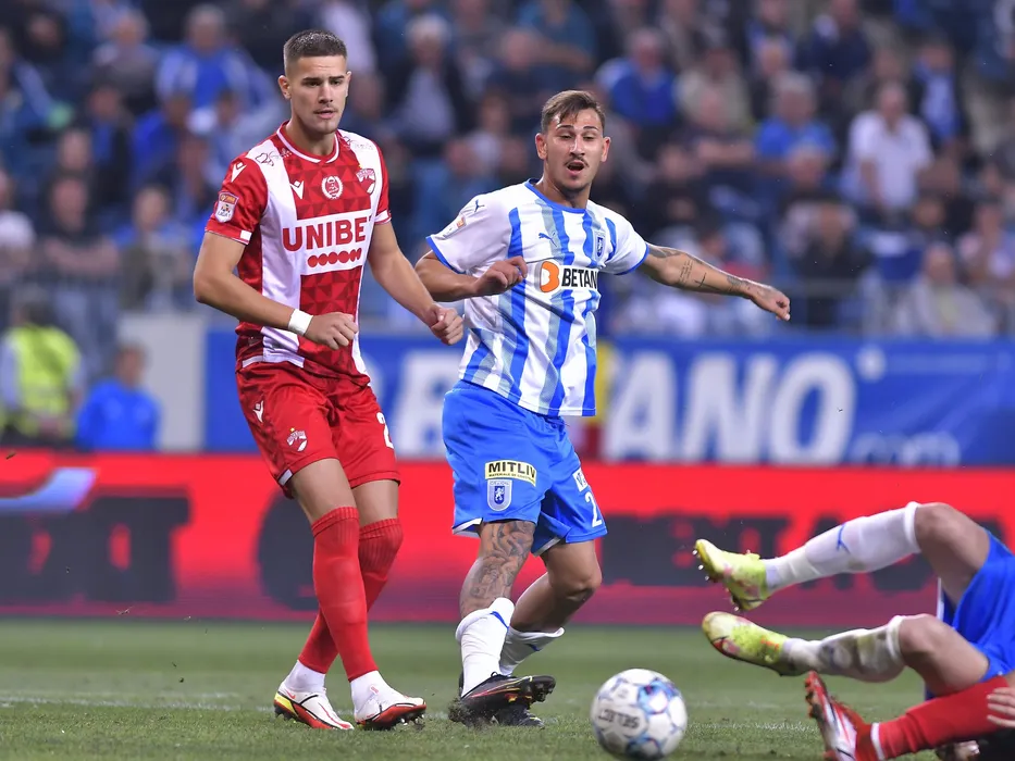 Ricardo Florin Grigore si Jovan Markovic in meciul de fotbal dintre Universitatea Craiova si Dinamo Bucuresti, contand pentru Liga 1 Casa Pariurilor, desfasurat pe Stadionul Ion Oblemenco din Craiova, luni 27 septembrie 2021. © FOTO:Razvan Pasarica/SPORT PICTURES
