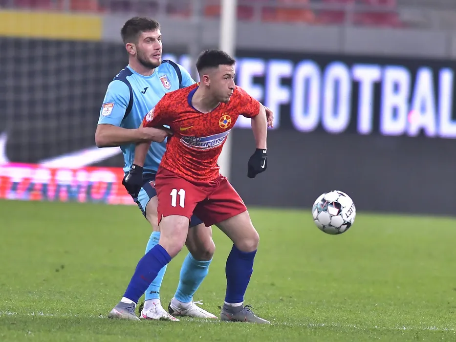 Paul Alexandru Iacob si Olimpiu Vasile Morutan in meciul de fotbal dintre FCSB si Chindia Targoviste, contand pentru Liga 1 Casa Pariurilor, desfasurat fara spectatori pe Arena Nationala din Bucuresti, sambata 20 februarie 2021. © FOTO:Razvan Pasarica/SPORT PICTURES