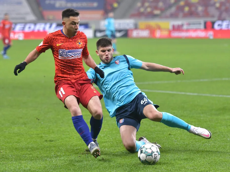 Olimpiu Vasile Morutan si Paul Alexandru Iacob in meciul de fotbal dintre FCSB si Chindia Targoviste, contand pentru Liga 1 Casa Pariurilor, desfasurat fara spectatori pe Arena Nationala din Bucuresti, sambata 20 februarie 2021. © FOTO:Razvan Pasarica/SPORT PICTURES