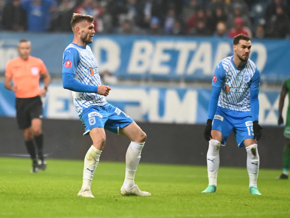 Alexandru Crețu marchează un gol în meciul de fotbal dintre Universitatea Craiova si Farul Constanta, contând pentru Superliga Superbet, desfășurat pe Stadionul Ion Oblemenco din Craiova, duminica 21 ianuarie 2024. © FOTO: Răzvan PĂSĂRICĂ/SPORT PICTURES
