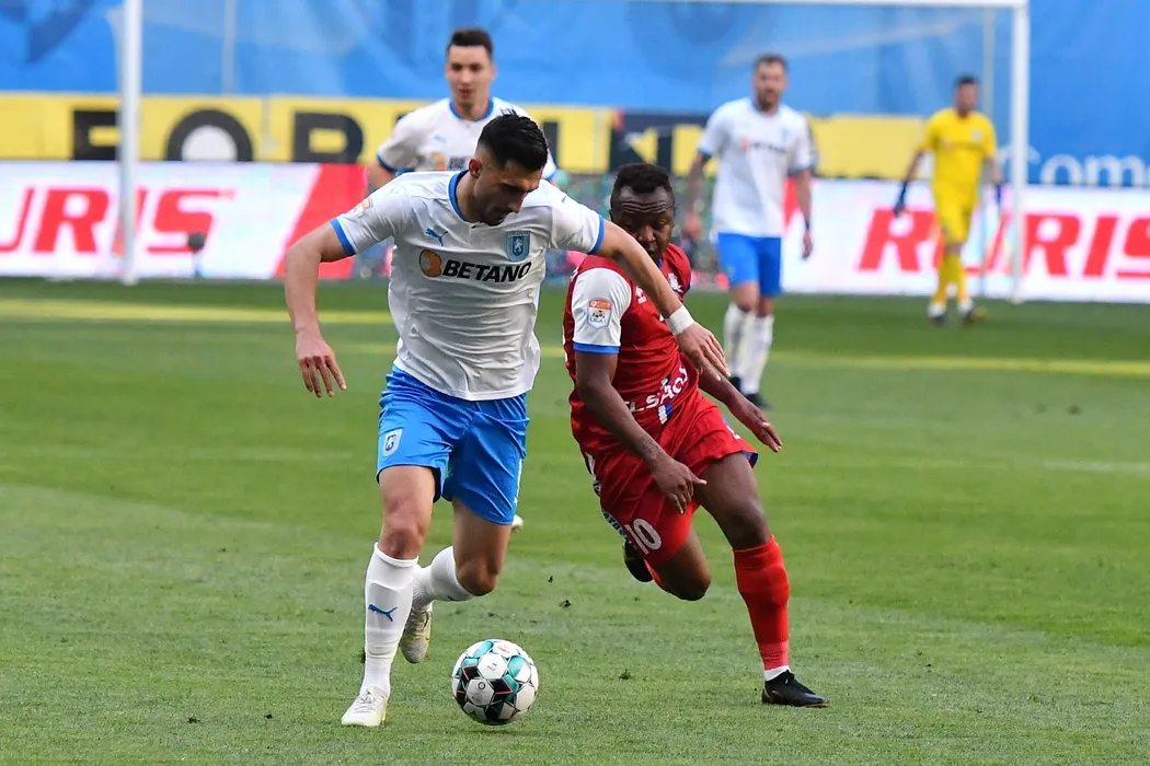 Andrei Ivan (S), de la Universitatea Craiova, suteaza in timpul meciului de fotbal contra echipei FC Botosani din etapa 7 a play-off-ului Ligii 1, disputat pe stadionul Ion Oblemenco din Craiova, duminica, 9 mai 2021. REMUS BADEA / MEDIAFAX FOTO