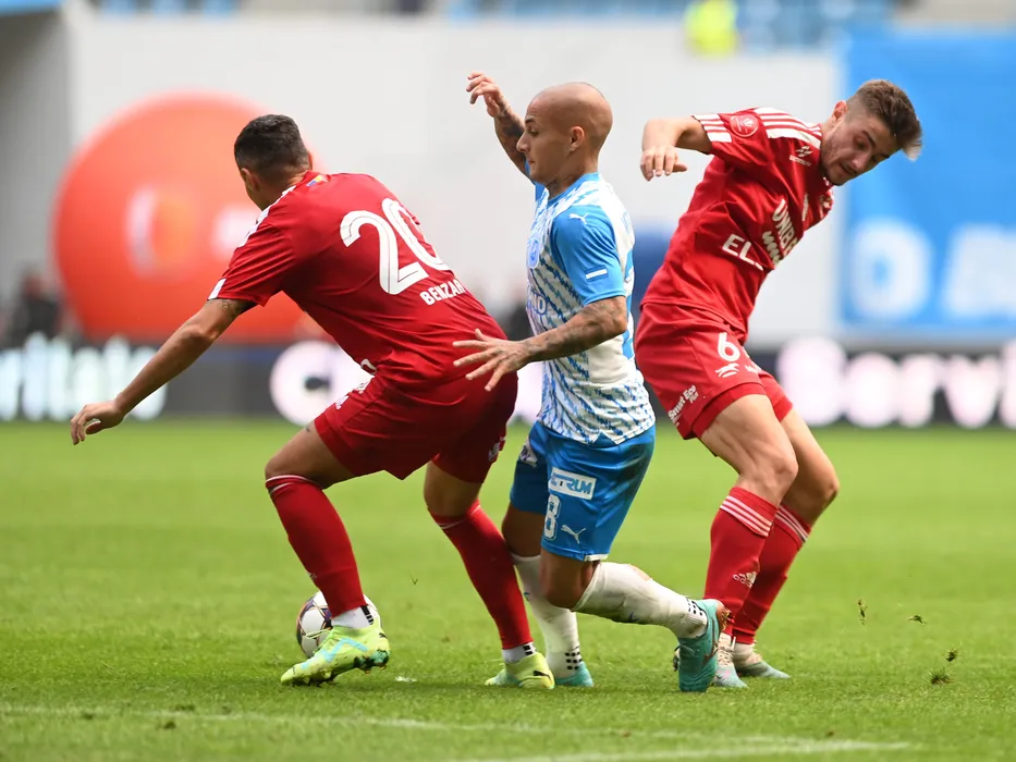 Ionut Alexandru Mitrita si Victor Robert Dican in meciul de fotbal dintre Universitatea Craiova si FC Botosani, contand pentru Superliga Superbet, desfasurat pe Stadionul Ion Oblemenco din Craiova, duminica 1 octombrie 2023. © FOTO:Razvan Pasarica/SPORT PICTURES