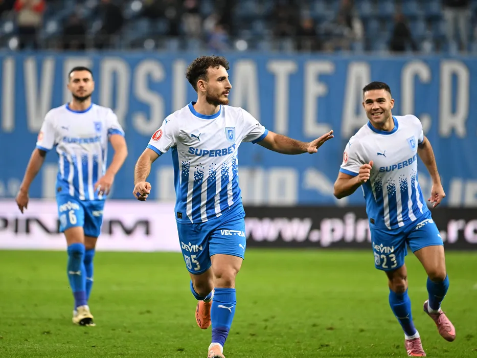 Anzor Mekvabishvili se bucură alături de Samuel Teles Pereira Nunes Da Silva dupa un gol marcat in meciul dintre Universitatea Craiova si Unirea Slobozia, contand pentru Superliga Superbet, desfasurat pe Stadionul Ion Oblemenco din Craiova, sambata 18 octombrie 2025. © FOTO:Razvan Pasarica/SPORT PICTURES