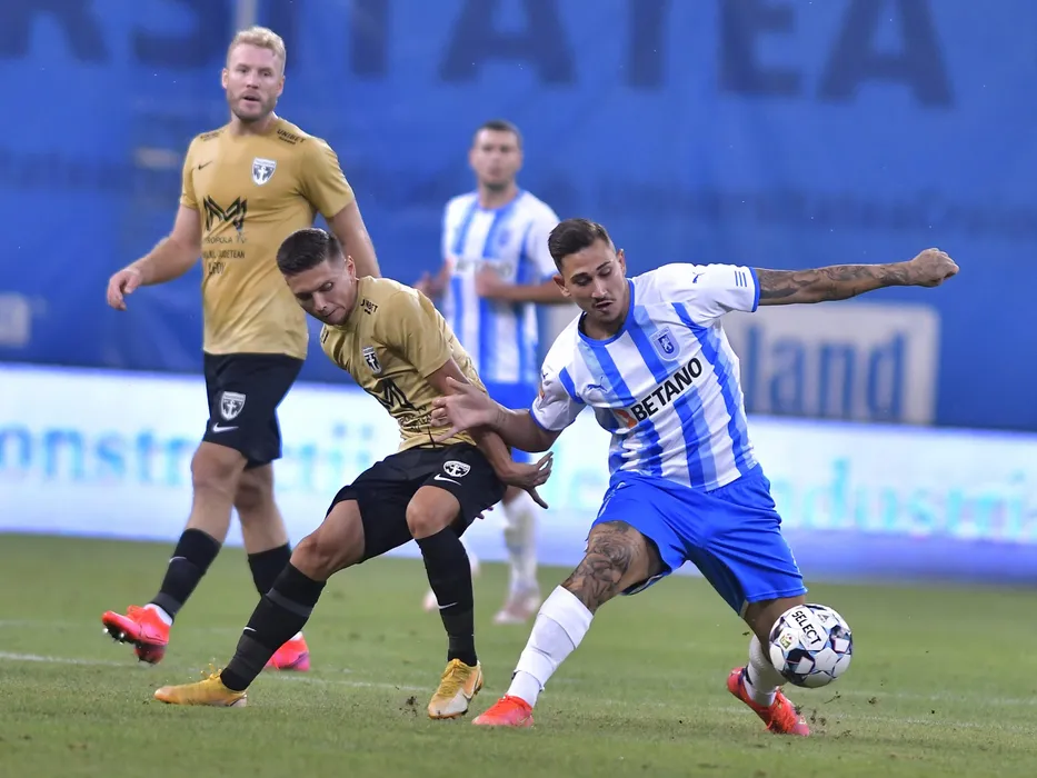 Ion Gheorghe si Jovan Markovic in meciul de fotbal dintre Universitatea Craiova si FC Voluntari, contand pentru Liga 1 Casa Pariurilor, desfasurat pe Stadionul Ion Oblemenco din Craiova, luni 9 august 2021. © FOTO:Razvan Pasarica/SPORT PICTURES