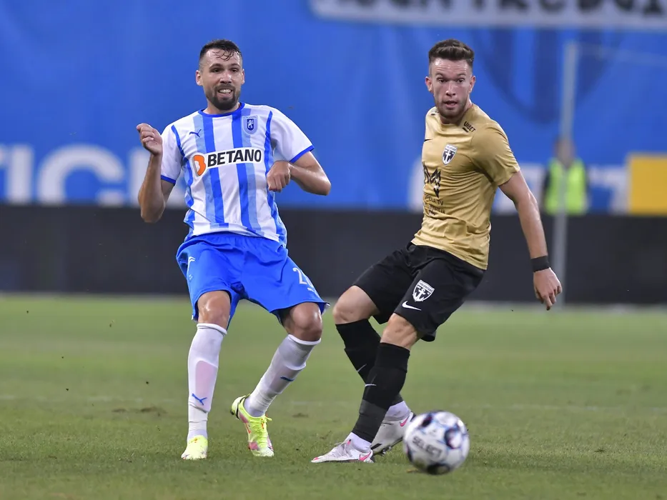 Valerica Marius Gaman si Lorand Levente Fulop in meciul de fotbal dintre Universitatea Craiova si FC Voluntari, contand pentru Liga 1 Casa Pariurilor, desfasurat pe Stadionul Ion Oblemenco din Craiova, luni 9 august 2021. © FOTO:Razvan Pasarica/SPORT PICTURES