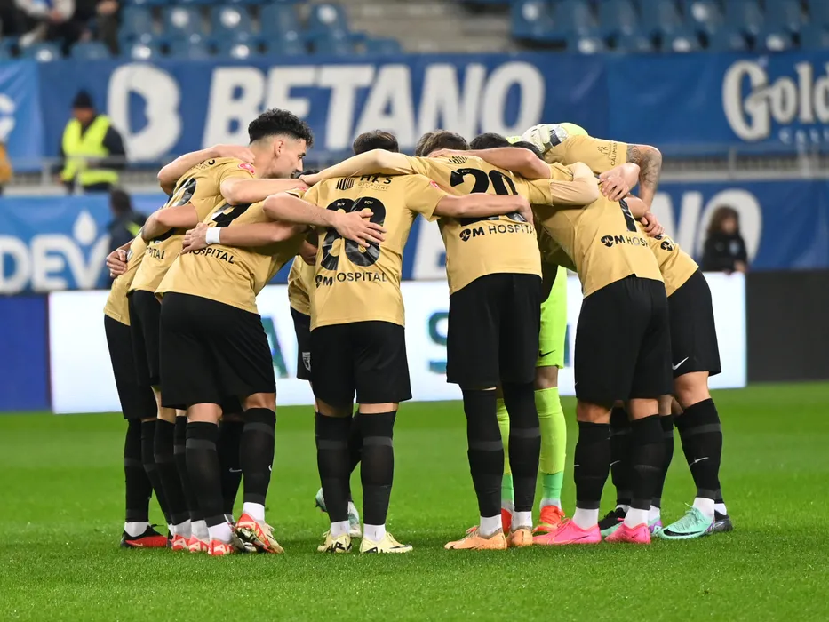 Fotbalistii voluntareni se incurajeaza inaintea meciului de fotbal dintre Universitatea Craiova si FC Voluntari, contând pentru Superliga Superbet, desfășurat pe Stadionul Ion Oblemenco din Craiova, luni 26 februarie 2024. © FOTO: Răzvan PĂSĂRICĂ/SPORT PICTURES