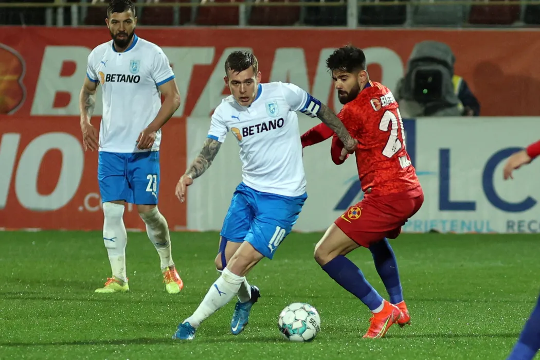 Ionut Vina (D), de la FCSB, lupta pentru balon cu Alexandru Cicaldau(S), de la Universitatea Craiova, in meciul de fotbal din etapa 29 a Ligii 1, disputat pe stadionul Marin Anastasovici din Giurgiu, duminica, 4 aprilie 2021. GEORGE FILIP / MEDIAFAX FOTO
