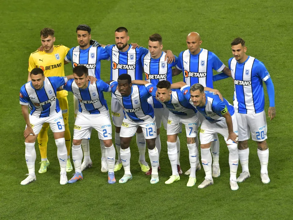 Fotbalistii craioveni la o fotografie de grup realizata inaintea meciului de fotbal dintre Universitatea Craiova si FCSB, contand pentru Play-off-ul Superligii Superbet, desfasurat pe Stadionul Ion Oblemenco din Craiova, duminica 30 aprilie 2023. © FOTO:Razvan Pasarica/SPORT PICTURES