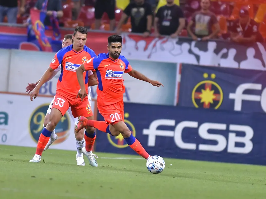 Risto Radunovic si Ionut Daniel Vina in meciul de fotbal dintre FCSB si FC Shakhter Karagandy, contand pentru Turul 2 preliminar din cadrul UEFA Confrence League, desfasurat pe Arena Nationala din Bucuresti, joi 22 iulie 2021. © FOTO:Razvan Pasarica/SPORT PICTURES