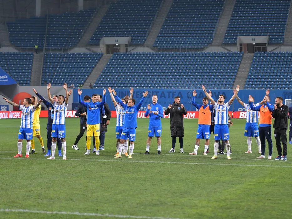 Fotbalistii craioveni aplauda galeria dupa meciul de fotbal dintre Universitatea Craiova si Dinamo Bucuresti, contand pentru Liga 1 Casa Pariurilor, desfasurat pe Stadionul Ion Oblemenco din Craiova, luni 27 septembrie 2021. © FOTO:Razvan Pasarica/SPORT PICTURES