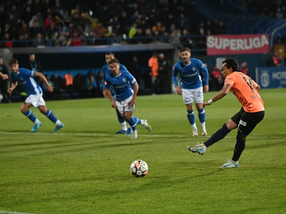 Lyes Hafid Houri marchează un gol din penalty in meciul de fotbal dintre Farul Constanta si Universitatea Craiova, contand pentru Superliga Superbet, desfasurat pe Stadionul central al Academiei Gheorghe Hagi din Ovidiu, luni 28 octombrie 2024. © FOTO:Razvan Pasarica/SPORT PICTURES