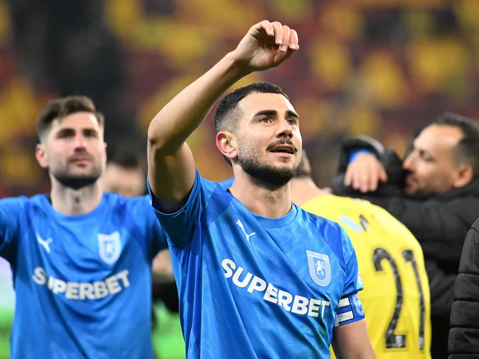 Screciu Vladimir Ionuț saluta galeria dupa meciul de fotbal dintre Dinamo Bucuresti si Universitatea Craiova, din cadrul Play off-ului Superligii Superbet, desfasurat pe Arena Nationala din Bucuresti, joi 19 martie 2026. © FOTO:Razvan Pasarica/SPORT PICTURES