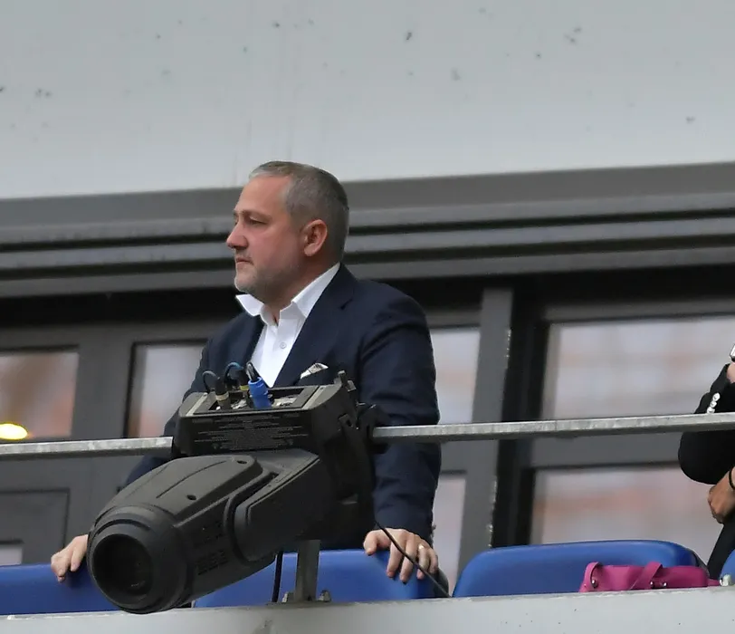 Mihai Rotaru si Lorena Trica privesc din tribuna intrarea lui Atanas Ioan Trica pe teren in meciul de fotbal dintre Universitatea Craiova si Academica Clinceni, contand pentru Play off-ul Ligii 1 Casa Pariurilor, desfasurat pe Stadionul Ion Oblemenco din Craiova, miercuri 26 mai 2021. © FOTO:Razvan Pasarica/SPORT PICTURES