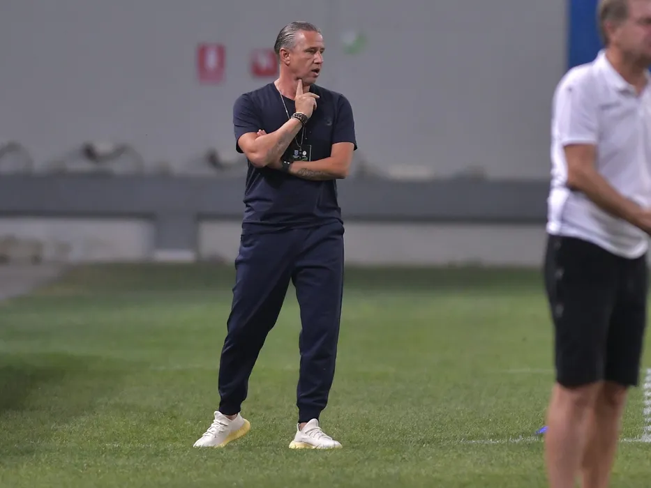 Laurentiu Aurelian Reghecampf reactioneaza in meciul de fotbal dintre Universitatea Craiova si KF Laci, contand pentru Turul 2 preliminar, mansa secunda a Conference League, desfasurat pe Stadionul Ion Oblemenco din Craiova, joi 29 iulie 2021. © FOTO:Razvan Pasarica/SPORT PICTURES