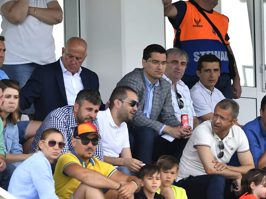 Titi Dumitriu,Razvan Burleanu,Ovidiu Costesin,Mihai Stoichita,Gabrie Bodescu si Daniel Mogosanu in tribuna la meciul de fotbal dintre reprezentantele U17 ale cluburilor FC Viitorul si CS Universitatea Craiova, contand pentru finala Ligii Elitelor U17, desfasurat pe terenul de iarba de la Centrul National de Fotbal din Buftea, sambata 2 iunie 2018. © FOTO Razvan Pasarica/SPORT PICTURES