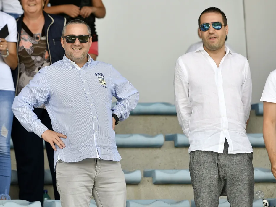 Patronul Craiovei Mihai Rotaru si Ovidiu Costesin in tribuna la meciul de fotbal dintre reprezentantele U17 ale cluburilor CS Universitatea Craiova si FC Viitorul, contand pentru Supercupa Romaniei U17, desfasurat pe Stadionul central Centrul National de Fotbal din Mogosoaia, sambata 9 iunie 2018. © FOTO Razvan Pasarica/SPORT PICTURES