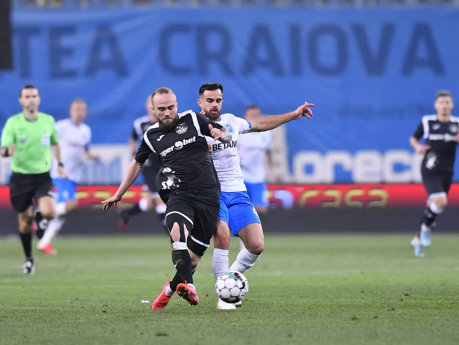 Marian Sorin Busu si Cristian Marian Barbut in meciul de fotbal dintre Universitatea Craiova si CSM Politehnica Iasi, contand pentru Liga 1 Casa Pariurilor, desfasurat fara spectatori pe Stadionul Ion Oblemenco din Craiova, vineri 2 octombrie 2020. © FOTO:Razvan Pasarica/SPORT PICTURES