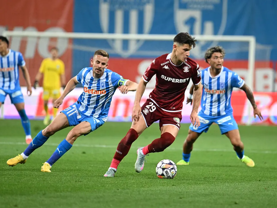 Nicușor Silviu Bancu si Mihai Alexandru Dobre in meciul dintre Universitatea Craiova si Rapid Bucuresti, contand pentru Play off-ul Superligii Superbet, desfasurat pe Stadionul Ion Oblemenco din Craiova, vineri 2 mai 2025. © FOTO:Razvan Pasarica/SPORT PICTURES