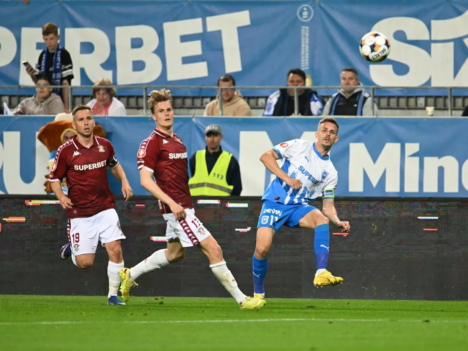 Phillipe Razvan Onea, Tobias Christensen si Stefan Baiaram in meciul dintre Universitatea Craiova si Rapid Bucuresti, contand pentru Play off-ul Superligii Superbet, desfasurat pe Stadionul Ion Oblemenco din Craiova, duminica 19 aprilie 2026. © FOTO:Razvan Pasarica/SPORT PICTURES