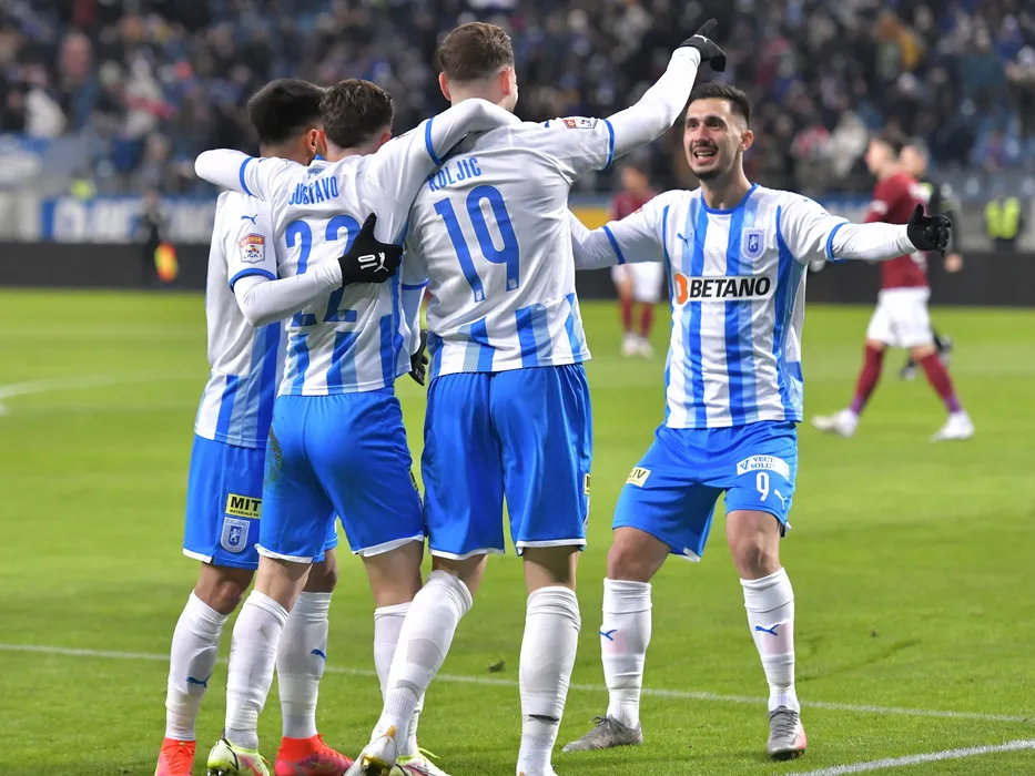 Elvir Koljic se bucura dupa un gol marcat alaturi de Andrei Virgil Ivan in meciul de fotbal dintre Universitatea Craiova si Rapid Bucuresti, contand pentru Liga 1 Casa Pariurilor, desfasurat pe Stadionul Ion Oblemenco din Craiova, sambata 22 ianuarie 2022. © FOTO:Razvan Pasarica/SPORT PICTURES