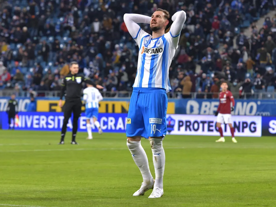 Elvir Koljic isi pune mainile pe cap dupa o ratare avuta in meciul de fotbal dintre Universitatea Craiova si Rapid Bucuresti, contand pentru Liga 1 Casa Pariurilor, desfasurat pe Stadionul Ion Oblemenco din Craiova, sambata 22 ianuarie 2022. © FOTO:Razvan Pasarica/SPORT PICTURES