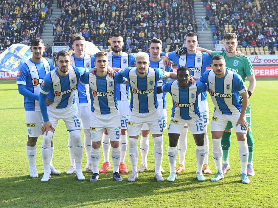 Fotbalistii craioveni la o fotografie de grup realizata inaintea meciului de fotbal dintre Petrolul Ploiesti si Universitatea Craiova, contand pentru Superliga Superbet, desfasurat pe Stadionul Ilie Oana din Ploiesti, duminica 5 martie 2023. © FOTO:Razvan Pasarica/SPORT PICTURES