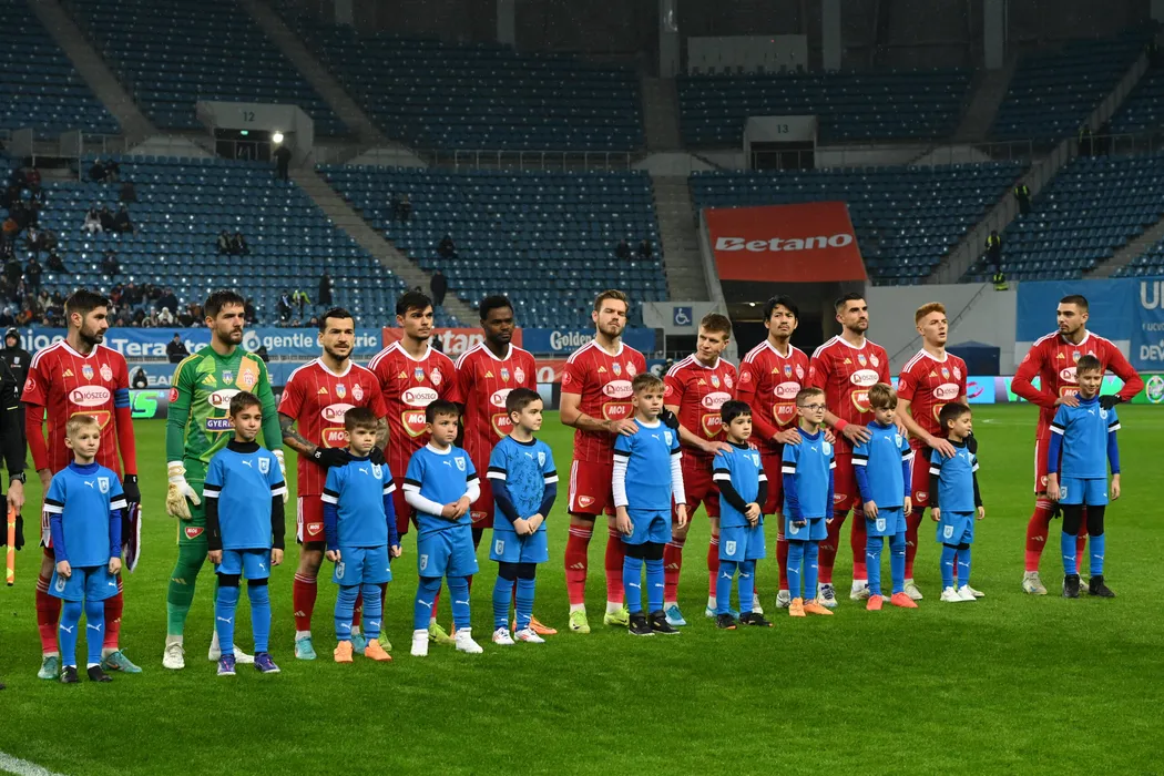 Fotbalistii de la Sepsi la startul meciului dintre Universitatea Craiova si Sepsi OSK Sfantu Gheorghe, contand pentru Superliga Superbet, desfasurat pe Stadionul Ion Oblemenco din Craiova, sambata 14 decembrie 2024. © FOTO:Razvan Pasarica/SPORT PICTURES