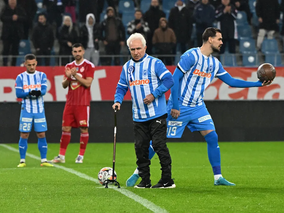 Marian Bica, aici alături de Elvir Koljic, da lovitura de start la meciul dintre Universitatea Craiova si Sepsi OSK Sfantu Gheorghe, contand pentru Superliga Superbet, desfasurat pe Stadionul Ion Oblemenco din Craiova, sambata 14 decembrie 2024. © FOTO:Razvan Pasarica/SPORT PICTURES