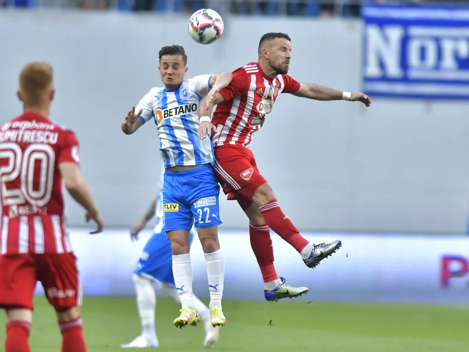 Gustavo Vagenin si Adnan Aganovic in meciul de fotbal dintre Universitatea Craiova si Sepsi OSK Sfantu Gheorghe, contand pentru Cupa Romaniei, desfasurat pe Stadionul Ion Oblemenco din Craiova, joi 12 mai 2022. © FOTO:Razvan Pasarica/SPORT PICTURES