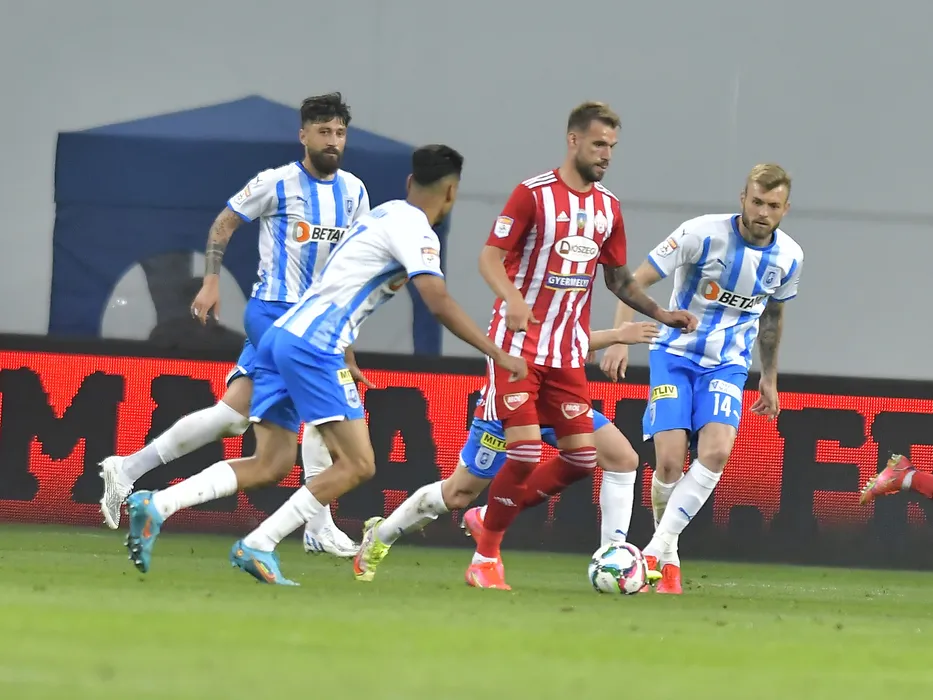 Paul Papp, Alexandru Tudorie si Alexandru Cretu in meciul de fotbal dintre Universitatea Craiova si Sepsi OSK Sfantu Gheorghe, contand pentru Cupa Romaniei, desfasurat pe Stadionul Ion Oblemenco din Craiova, joi 12 mai 2022. © FOTO:Razvan Pasarica/SPORT PICTURES