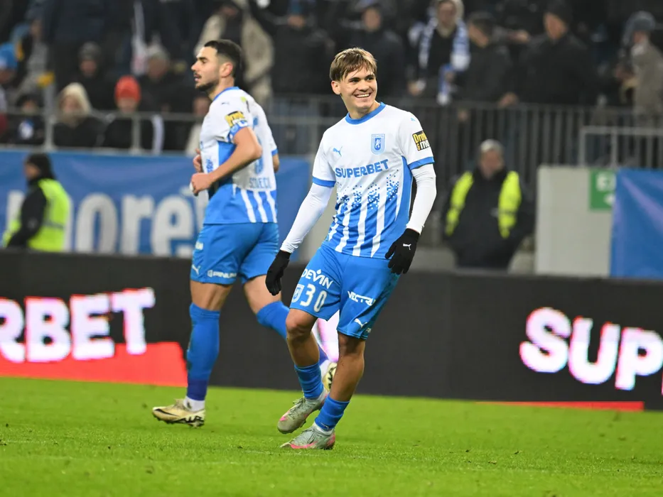 David Matei se bucura dupa un gol marcat in meciul dintre Universitatea Craiova si FK Csikszereda Miercurea Ciuc, contand pentru Superliga Superbet, desfasurat pe Stadionul Ion Oblemenco din Craiova, luni 22 decembrie 2025. © FOTO:Razvan Pasarica/SPORT PICTURES