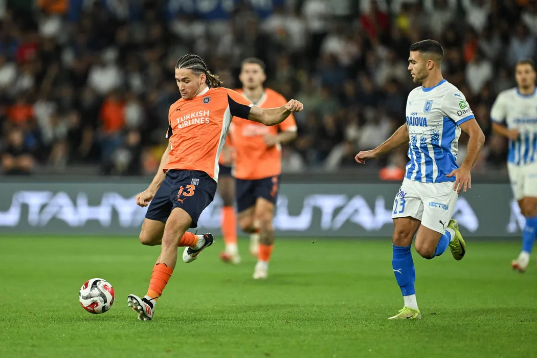 Miguel Crespo si Samuel Teles Pereira Nunes Da Silva in meciul de fotbal dintre İstanbul Başakşehir FK si Universitatea Craiova, contand pentru Play-Off Conference League , desfasurat pe Başakşehir Fatih Terim din Instanbul, joi 21 august 2025. © FOTO:Hepta/SPORT PICTURES