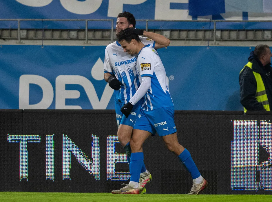 Assad Al Islam Al Hamlawi si Tudor Cristian Baluta se bucura dupa un gol marcat in meciul de fotbal dintre Universitatea Craiova si FC CFR 1907 Cluj, contand pentru Superliga Superbet, desfasurat pe Stadionul Ion Oblemenco din Craiova, duminica 7 decembrie 2025. © FOTO:Raed Krishan/SPORT PICTURES