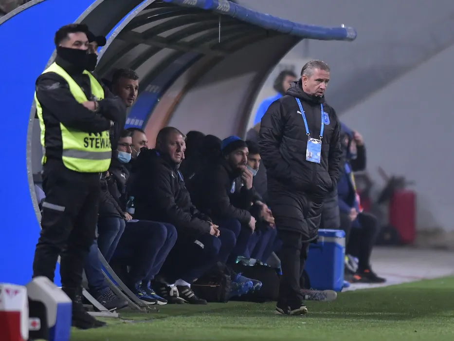 Laurentiu Aurelian Reghecampf pe banca craioveana la meciul de fotbal dintre Universitatea Craiova si UTA Arad, contand pentru Liga 1 Casa Pariurilor, desfasurat pe Stadionul Ion Oblemenco din Craiova, marti 14 decembrie 2021. © FOTO:Razvan Pasarica/SPORT PICTURES
