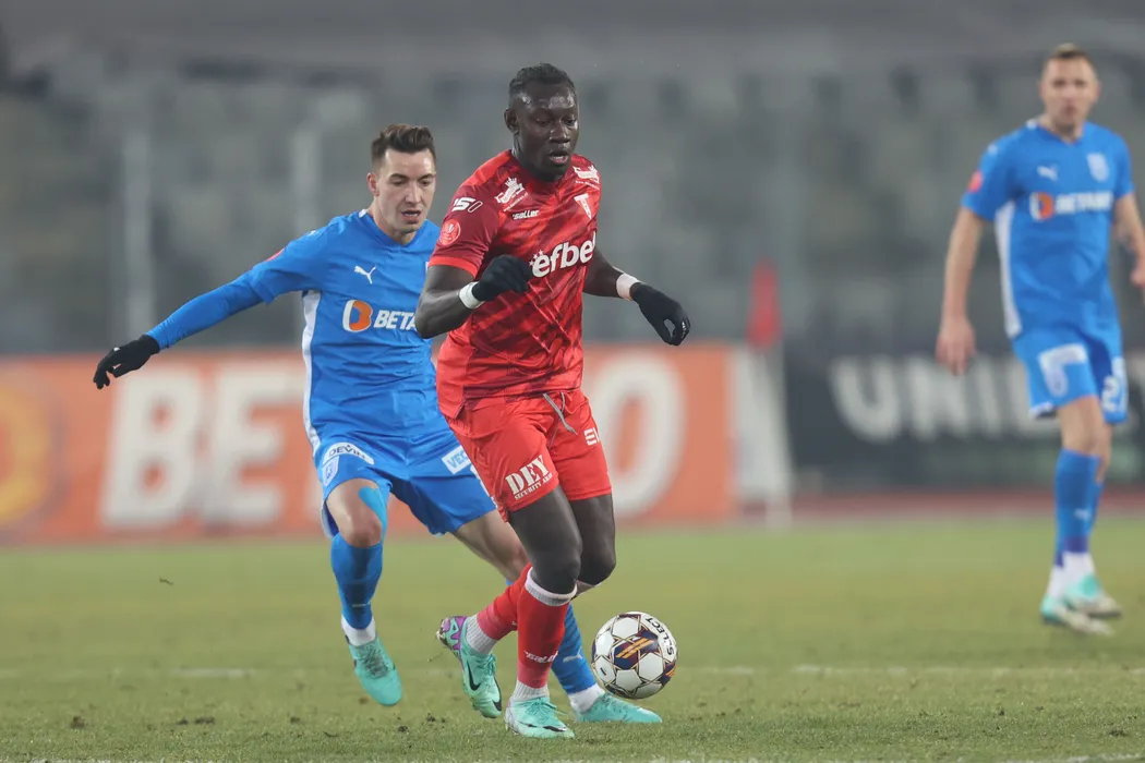 Barry Cooper Godberg și Alexandru Mateiu în meciul de fotbal dintre AFC UTA Arad si Universitatea Craiova, contând pentru Superliga Superbet, desfășurat pe Stadionul Cluj Arena din Cluj-Napoca, miercuri 20 decembrie 2023. © FOTO:Ciprian PETCUT/SPORT PICTURES